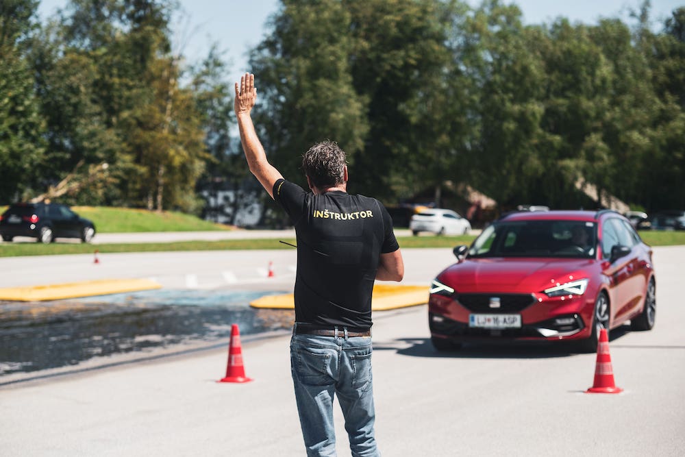 • Vaja Hard brake – zaviranje (tečajniki spoznavajo različne načine zaviranja v kombinaciji  različnih podlagah:  suhi, poledeneli ter v kombinaciji gledano na vzdolžno os vozila pol suha pol poledenela).